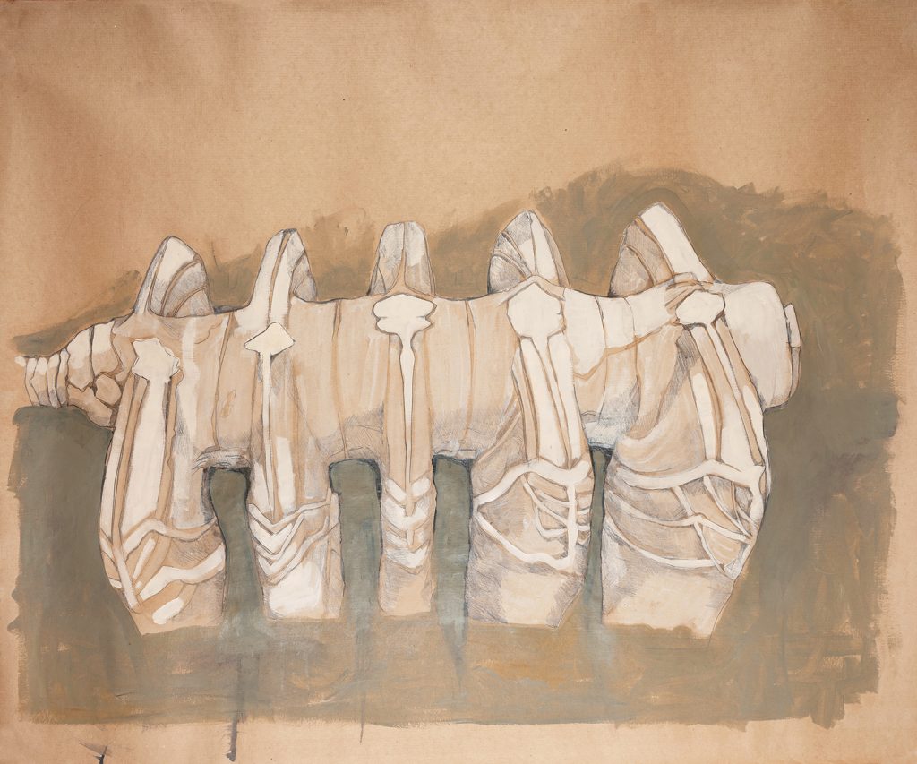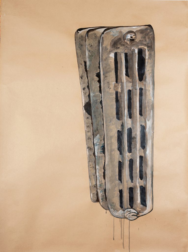 Zu den zahlreichen Relikten, die die Zeitschichten des Haftkellers „möblieren“, gehören auch die Heizkörper. Man sieht sie besonders bewusst, wenn der Raum fast leer ist und sie wie seltsame Skulpturen wirken. Ihre Funktion basiert auf Wasser. Wie viele der Bauelemente hier, etwa die gusseisernen Säulen, stammen auch ein paar ornamentierte Heizkörper aus der Zeit vor der Umwandlung des Gebäudes von einer Kartonagenfabrik, später Wohnhaus, in eine totalitäre Strafanstalt.